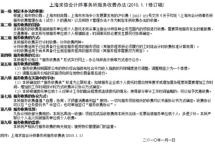 上海求信会计师事务所服务收费办法